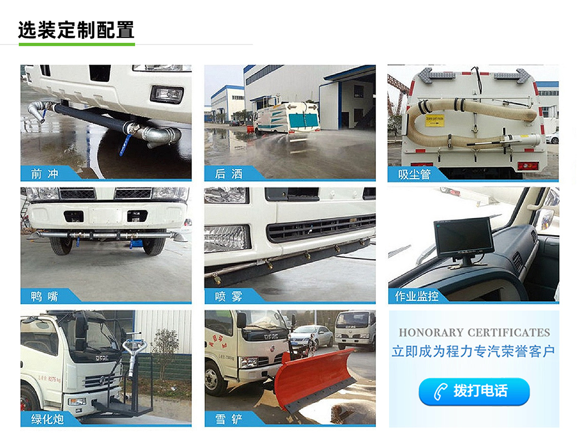 2:具有全洗掃作業、左洗掃作業、右洗掃作業、全掃路作業、左掃路作業、右掃路作業、全吸作業、左洗作業和右洗作業等9種作業模式可選。
